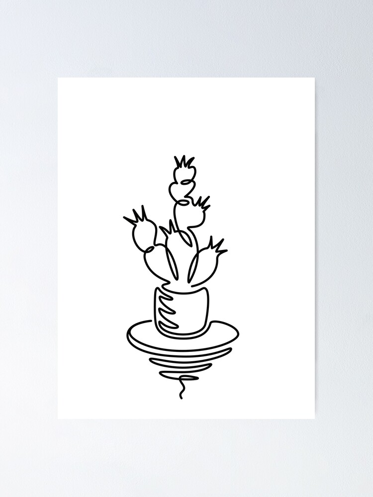 One Line Drawing Vector Set Cacti In A Pot Modern Continuous Line Art Aesthetic Contour Cactus Succulent Collection For Poster Wall Art Tote Bag Or T Shirt Print Logo Sticker Mobile Case Stock Draw two arms on either side of the stem.